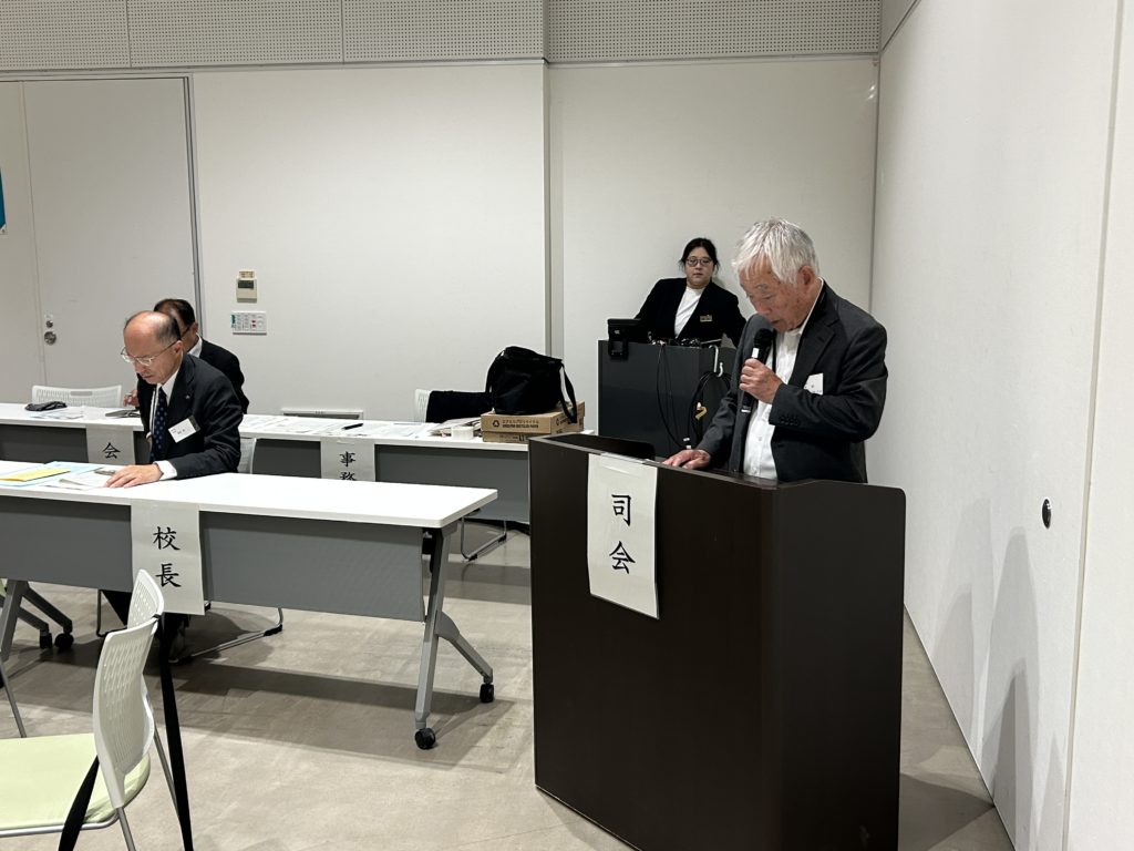 山崎秀雄同窓会長、室田昌一名誉会長(学校長)のあいさつ後、議長が選出され、以下の議案について審議を行い、いずれも承認されました。