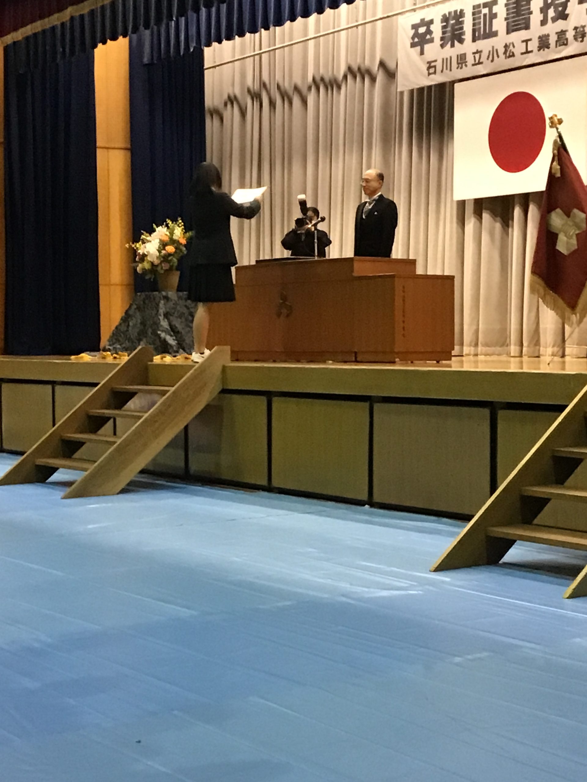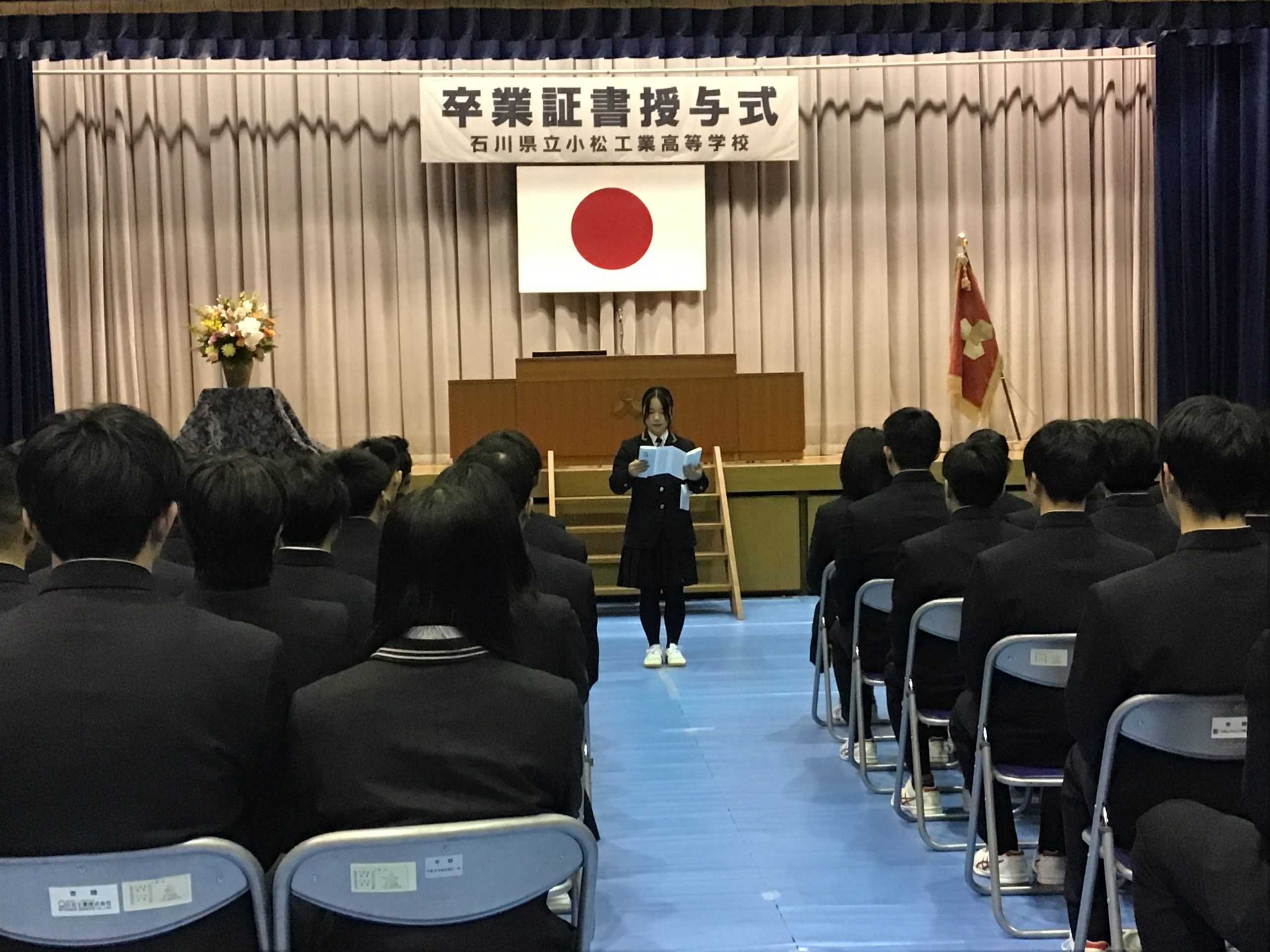 3月3日(火)には石川県立小松工業高等学校 第61回卒業証書授与式が挙行され、山崎同窓会長、岡本庶務、沢田会計と早戸関東支部長、山次中京支部総務幹事、岡田関西副支部長(関西)が臨席し、卒業生204名が卒業しました。