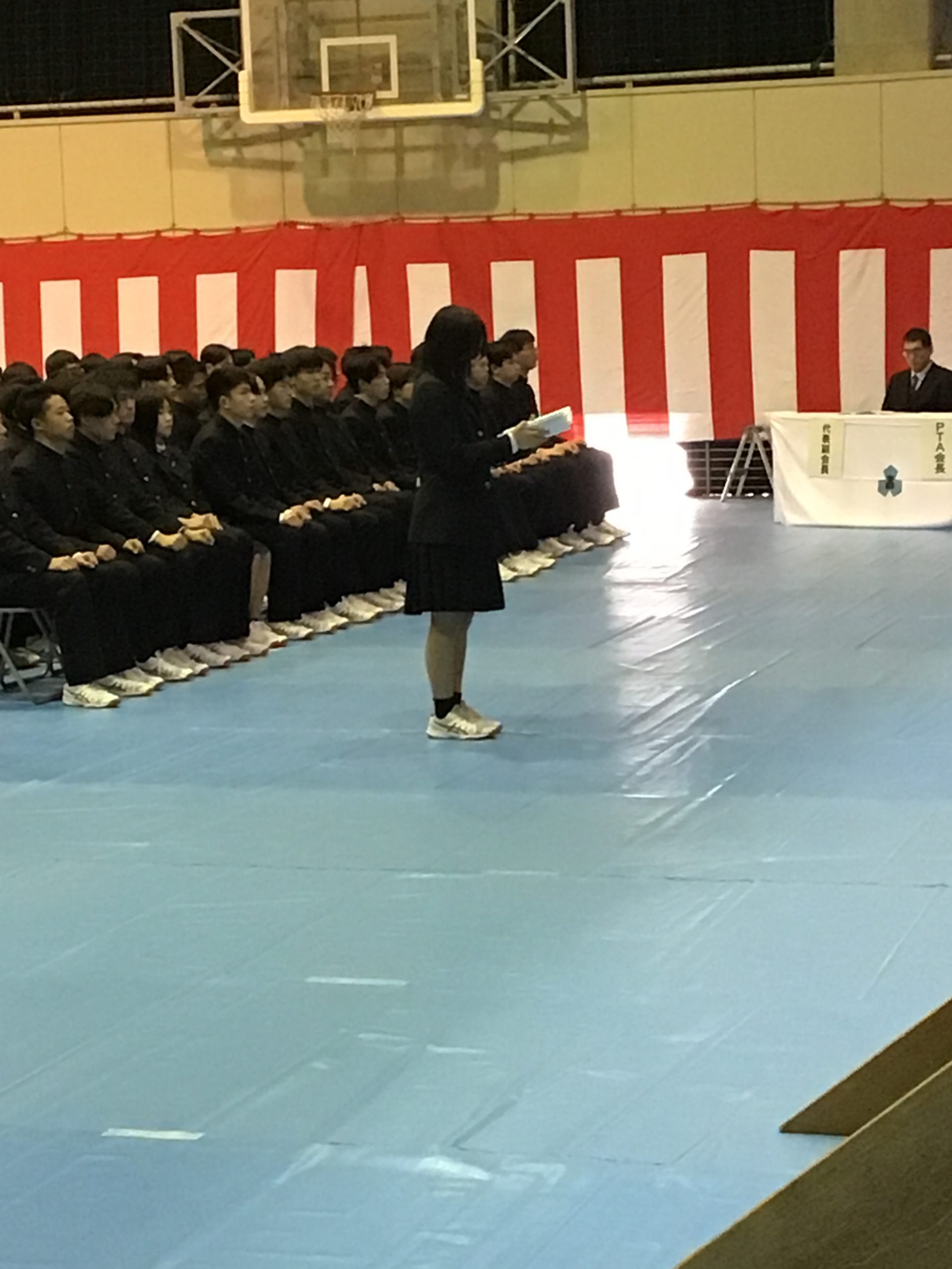 送辞では、在校生を代表して、酒井詩音さんから卒業生に向けてお祝いのことばが送られ、答辞では、卒業生を代表して海老芽唯さんが在校生、職員、保護者に向けて感謝の気持ちが伝えられました。
